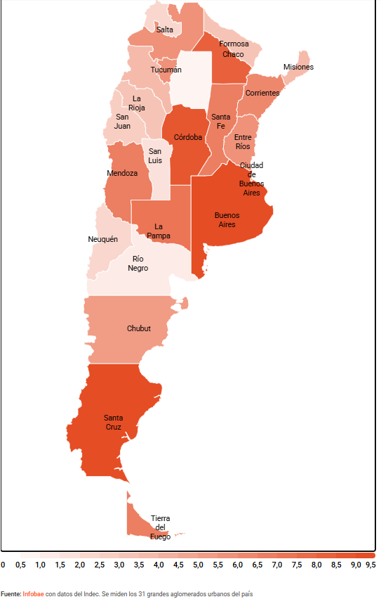El último informe del Indec revela una fuerte disparidad territorial: mientras el Gran Buenos Aires y ciudades de la región Pampeana rozan los dos dígitos de desocupación, aglomerados del NOA y la Patagonia registran niveles mínimos