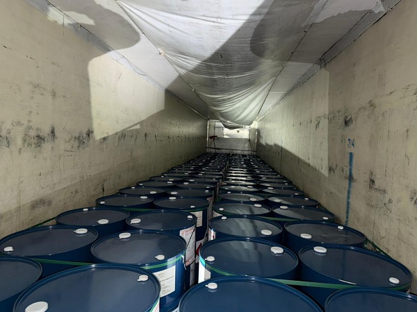 La sustancia que se encuentra en la lista II de precursores químicos era trasladada en dos transportes de carga y estaba distribuida en 191 tambores.