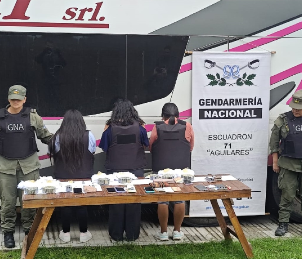 Ocurrió en Huacra, en donde los Gendarmes del Escuadrón 71 “Aguilares” de Tucumán controlaron un ómnibus que partió de Orán, Salta y se dirigía hacia la provincia de Mendoza detectando que una ciudadana llevaba envoltorios con parte de la droga acondicionada a su cuerpo. Eso derivó en el hallazgo de más de 3 kilos del estupefaciente que eran trasladados por tres de las pasajeras.