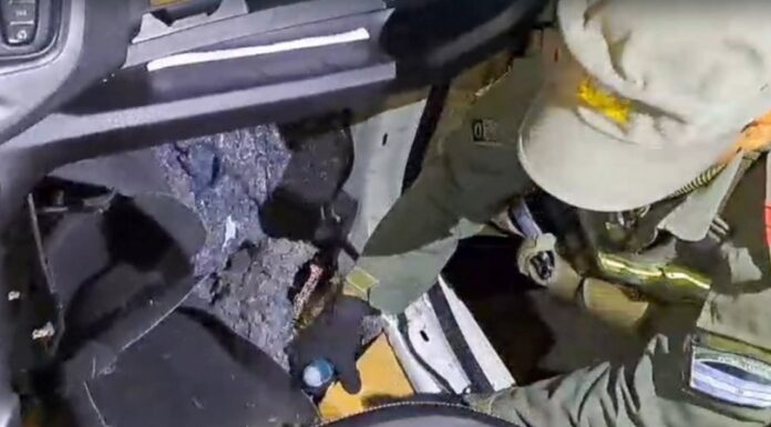 Ante este indicio, los uniformados procedieron a realizar una inspección más minuciosa, la cual permitió hallar más ladrillos en el interior de los zócalos y piso del vehículo.