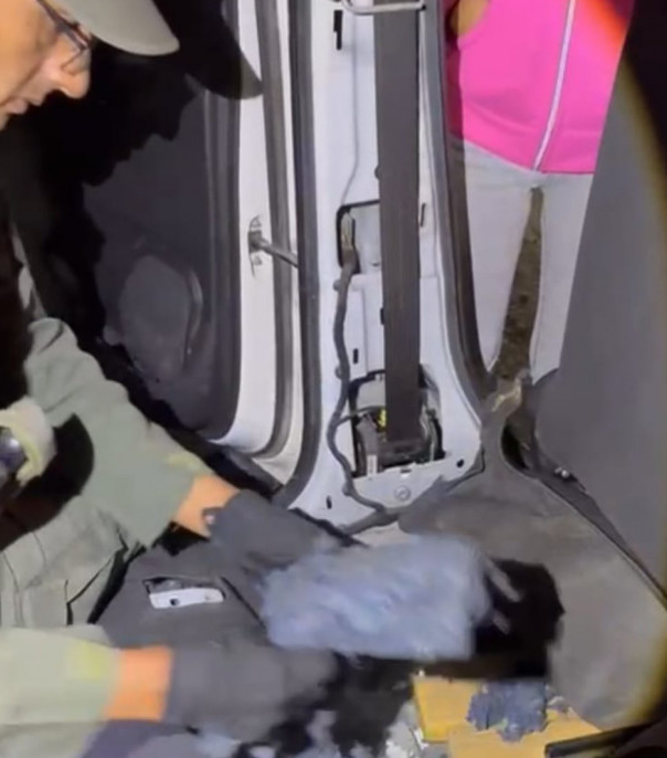 Al continuar con el registro de los ocupantes del rodado, los funcionarios notaron anomalías en el aire acondicionado, donde observaron a través de la rejilla paquetes rectangulares, similares a los utilizados para el transporte de estupefacientes.