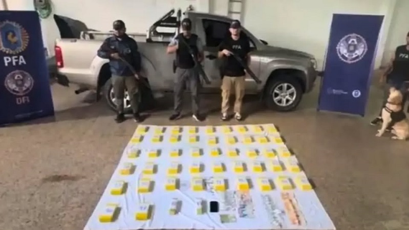 Ante esta situación, el procedimiento fue trasladado a una dependencia policial, donde se realizó una requisa más exhaustiva. Allí se descubrió un doble fondo en la camioneta que ocultaba varios paquetes tipo “ladrillo”.