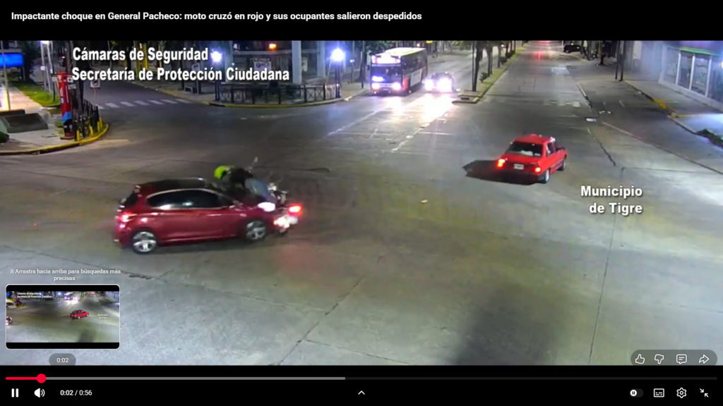 Según se puede observar en las imágenes captadas por el Centro de Operaciones Tigre (COT), el conductor de la moto cometió una grave imprudencia: cruzó el semáforo en rojo e impactó de frente con un automóvil que circulaba correctamente en sentido contrario.