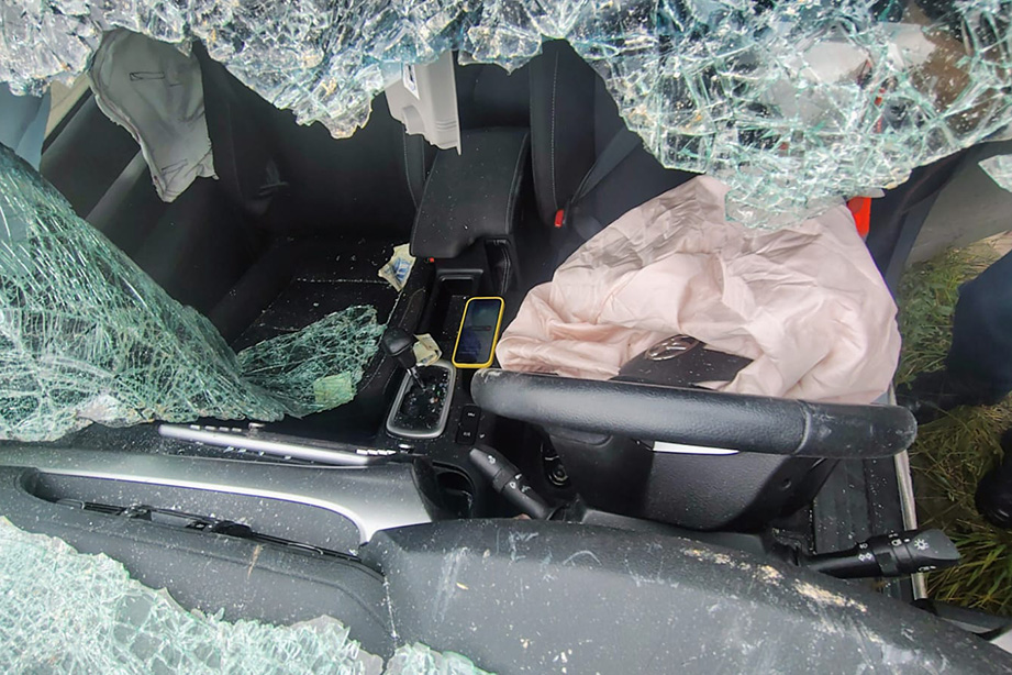 El comerciante rompió a patadas el parabrisas, para escapar del lugar del choque.