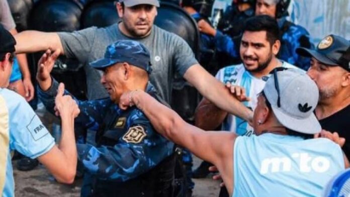 Hinchas del “Albo” se calentaron por la derrota y terminaron a las piñas en la tribuna