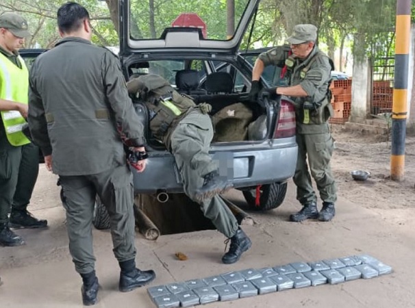 Una pareja con su hija viajaba con 23 kilos de cocaína escondidos el baúl del auto en Aguaray