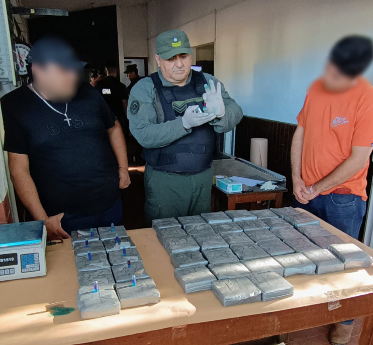 En presencia de testigos, los gendarmes retiraron la chapa que recubría los laterales del baúl y extrajeron del interior de los compartimientos 42 paquetes rectangulares que contenían una sustancia blancuzca.