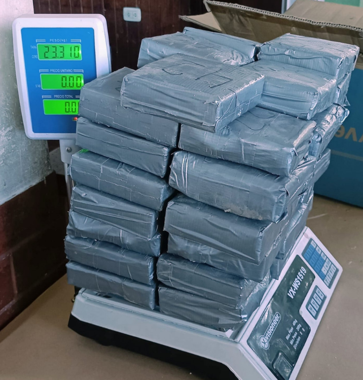 Las pruebas de campo Narcotest arrojaron resultado positivo para cocaína, con un peso total 23 kilos 310 gramos.