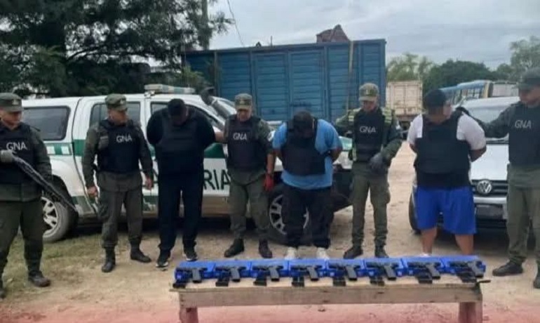Los individuos trasladaban ocho pistolas calibre 9 mm, marca Bersa modelo TPR9, todas con la numeración limada. También incautaron dieciséis cargadores vacíos con capacidad para 17 municiones cada uno y tres teléfonos celulares.