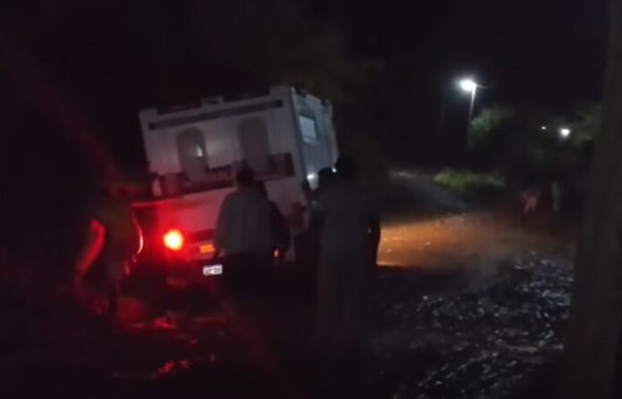 Una mujer de 85 años tuvo que ser trasladada a pulso por vecinos y personal de salud debido a que la ambulancia quedó empantanada en el barro en el sector 2 de La Loma en Embarcación. La paciente presentaba dolor en el pecho y, según se informó, la enfermera logró estabilizarla tras una larga espera de 3 horas hasta que vecinos colaboraron para trasladar la camilla hasta un lugar más accesible para los vehículos.