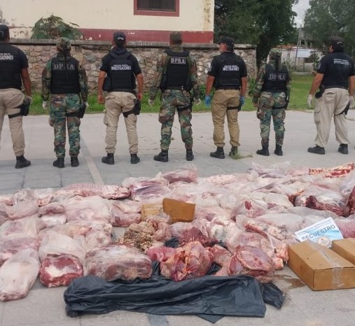 En el marco de los procedimientos realizados, se concretaron allanamientos simultáneos con resultado positivo, lográndose el secuestro de teléfonos celulares, dinero en efectivo, elementos utilizados para la faena y transporte, y carne de origen no acreditado. Asimismo, se dispuso la intervención de locales comerciales donde se habría comercializado la mercadería, constatándose la presencia de productos sin documentación sanitaria ni trazabilidad.