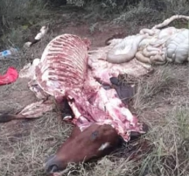 Vecinos de General Mosconi alertaron sobre el hallazgo de los restos de un equino en las inmediaciones de finca Los Micros. El animal presentaba evidentes señales de haber sido faenado y, según manifestaron los testigos, parte de su carne habría sido retirada para consumo.
